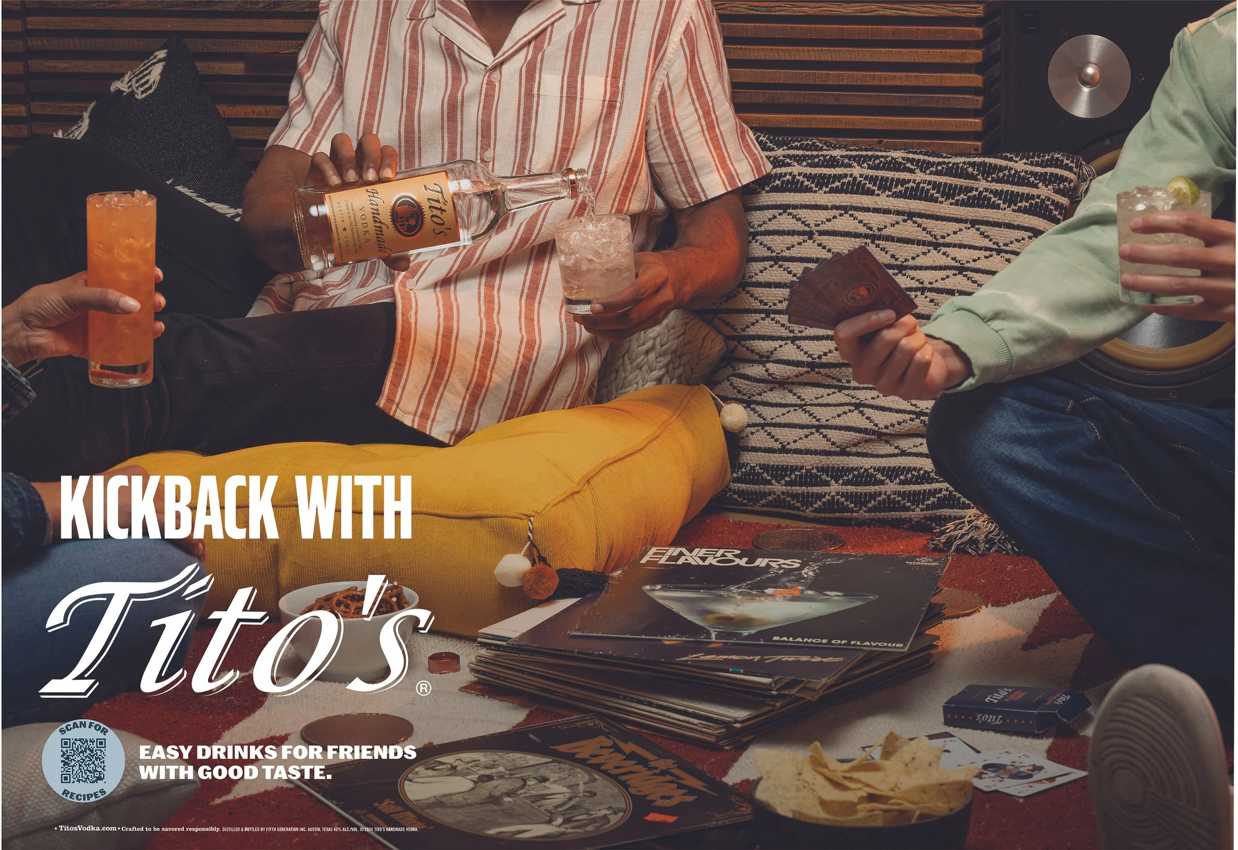 “Kickback with Tito’s” was an easygoing campaign built around the idea of the classic kickback — a laid-back hang with good friends, good vibes, and a Tito’s cocktail in hand. I was involved in every stage of the creative process, from early brainstorms and sketching out concepts to coordinating the photoshoot alongside my creative director and photographer. The visuals leaned into warmth, authenticity, and a sense of real connection you get from a kickback. I handled the full design execution through final layout and delivery, ensuring every element felt cohesive, inviting, and true to the Tito’s brand.