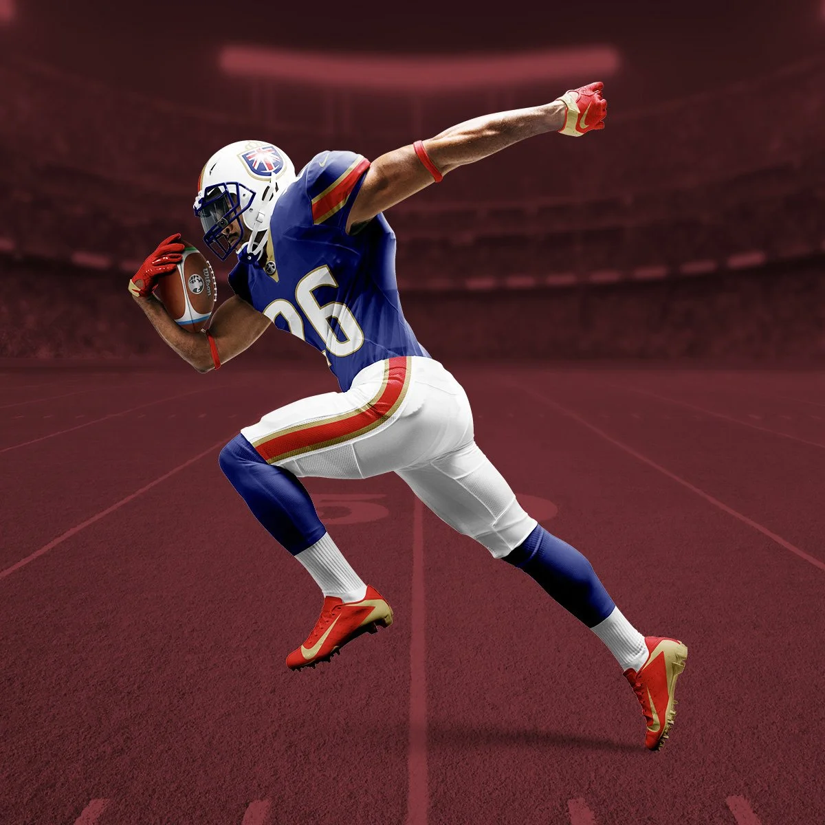 World Gridiron is a made-up 16-team football league that I started as a 6th grader in 1995 as a fun passion project. The league spans 11 countries, mixing global culture with the vibe of American football. It’s grown into a whole universe of teams—each with its own look and story. I’ve designed every logo and uniform myself, pulling from national colors, symbols, and traditions while keeping the whole league’s style consistent.